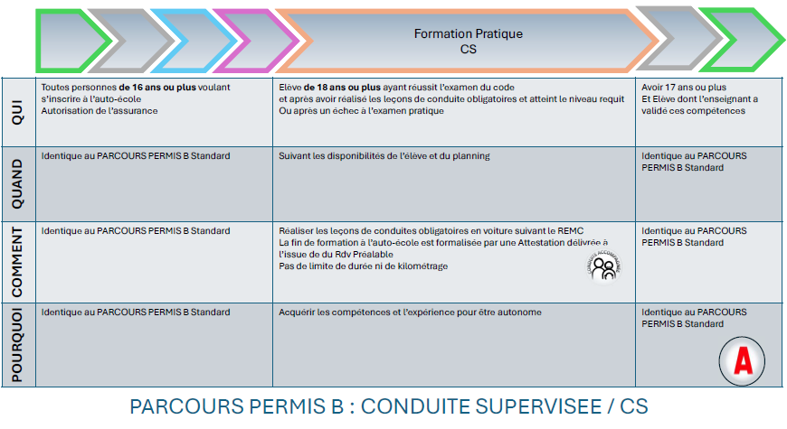 Pour le Permis B ou Conduite Supervisée (CS)